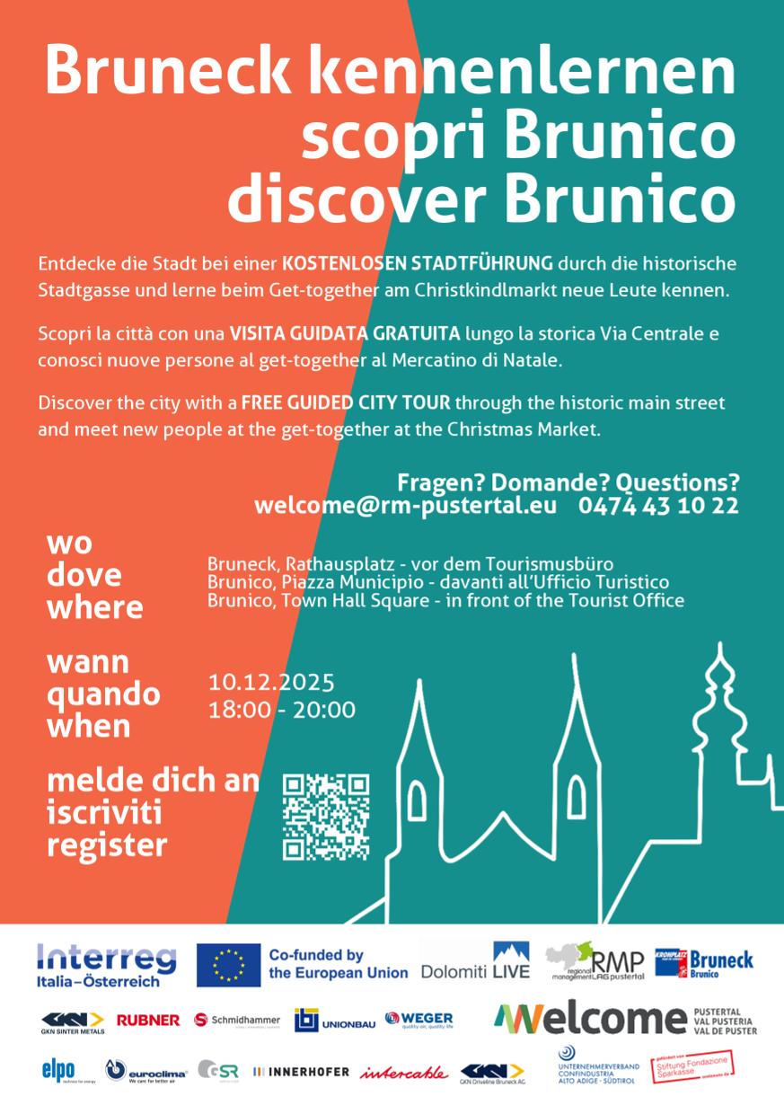 On Wednesday, December 10, 2025, we warmly invite you to join us for a guided city tour of Bruneck!