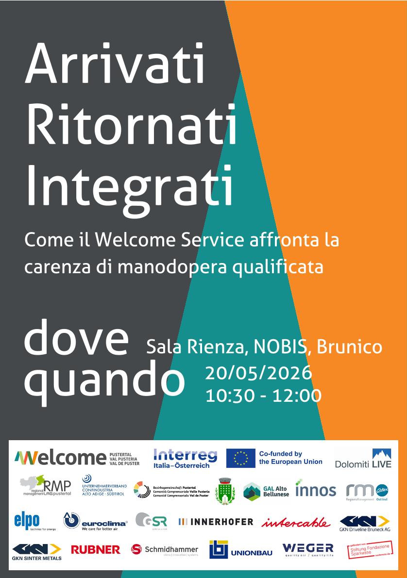 L’evento inserisce questo tema in un contesto più ampio: inizialmente verranno discusse le principali sfide legate all’attrazione di personale qualificato e alla cultura dell’accoglienza nella regione. Su queste basi saranno poi presentate le esperienze e gli approcci concreti sviluppati nel progetto.